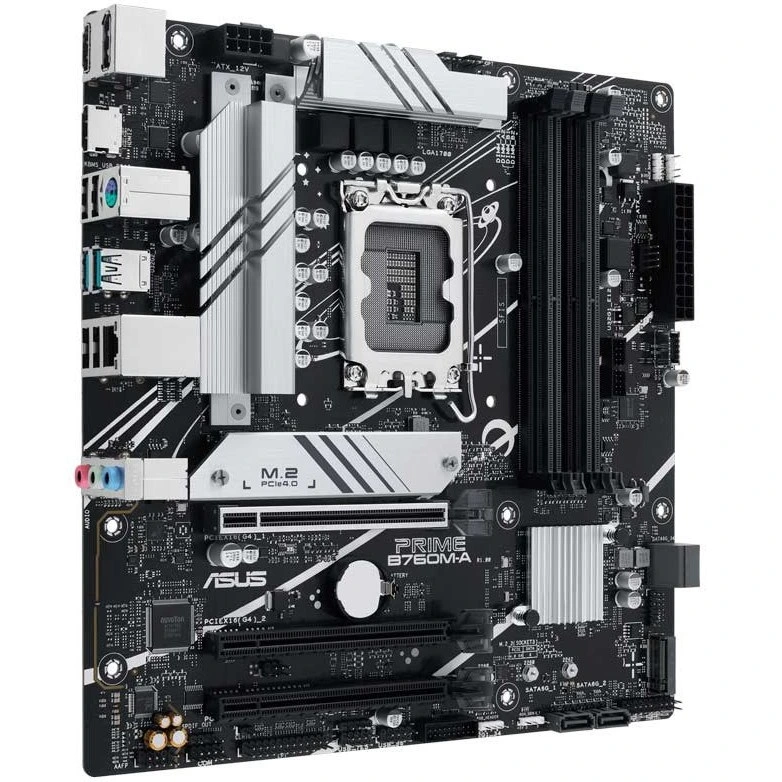 مادربرد ایسوس مدل Prime B760M-A یک گزینه عالی برای کاربران حرفهای و گیمرها است که به دنبال پلتفرم Intel با امکانات متنوع هستند. این مادربرد با فرم فاکتور Micro-ATX طراحی شده و از پردازندههای نسل 12، 13 و 14 سری Core اینتل به همراه پردازندههای Pentium Gold و Celeron پشتیبانی میکند. حافظه DDR5 با حداکثر ظرفیت 128 گیگابایت و پشتیبانی از پروفایل XMP به کاربران امکان اورکلاک و افزایش کارایی سیستم را میدهد.