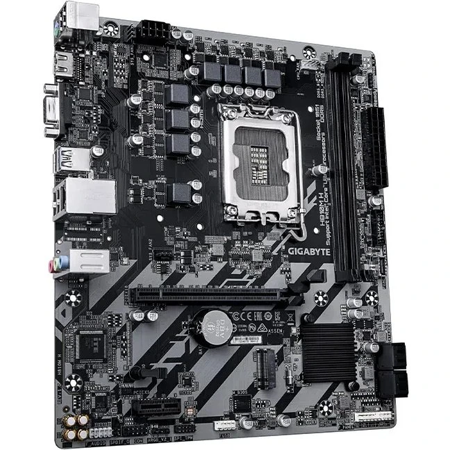 مادربرد گیگابایت مدل H810M H با فرم فاکتور Micro-ATX و ابعاد ۲۴۴×۲۱۵ میلیمتر، برای پردازندههای سری Core Ultra اینتل با سوکت LGA 1851 طراحی شده است. علاوه بر این، این مادربرد از دو اسلات حافظه DDR5 با پیکربندی دو کاناله و حداکثر ظرفیت ۱۲۸ گیگابایت پشتیبانی میکند و فرکانس حافظه تا ۶۴۰۰ مگاهرتز را ارائه میدهد.
