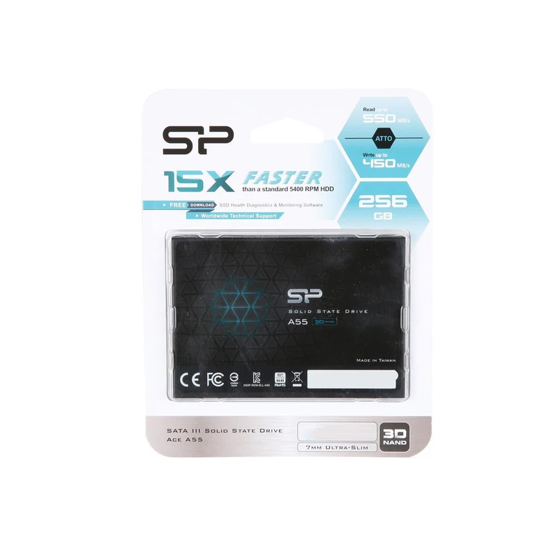 هارد SSD اینترنال سیلیکون پاور Ace A55 ظرفیت 256 گیگابایت یک انتخاب مقرون‌به‌صرفه برای کاربری روزمره، اداری و خانگی محسوب می‌شود.