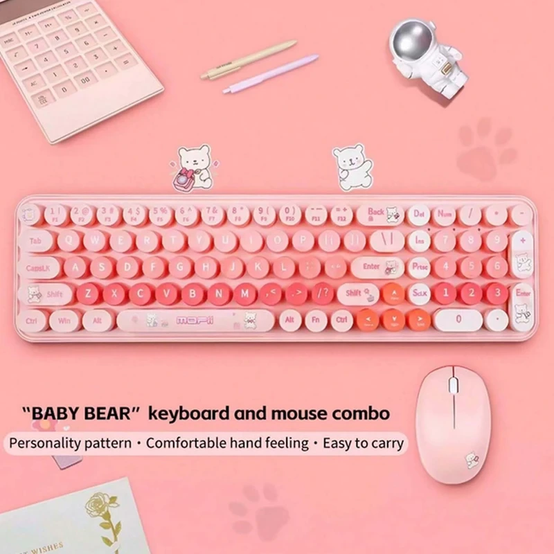 ست کیبورد و ماوس Mofii Baby Bear pink انتخابی ایدهآل برای کسانی است که به دنبال محصولی زیبا، جمعوجور، پایدار و مناسب محیطهای اداری، خانگی و تحصیلی هستند.