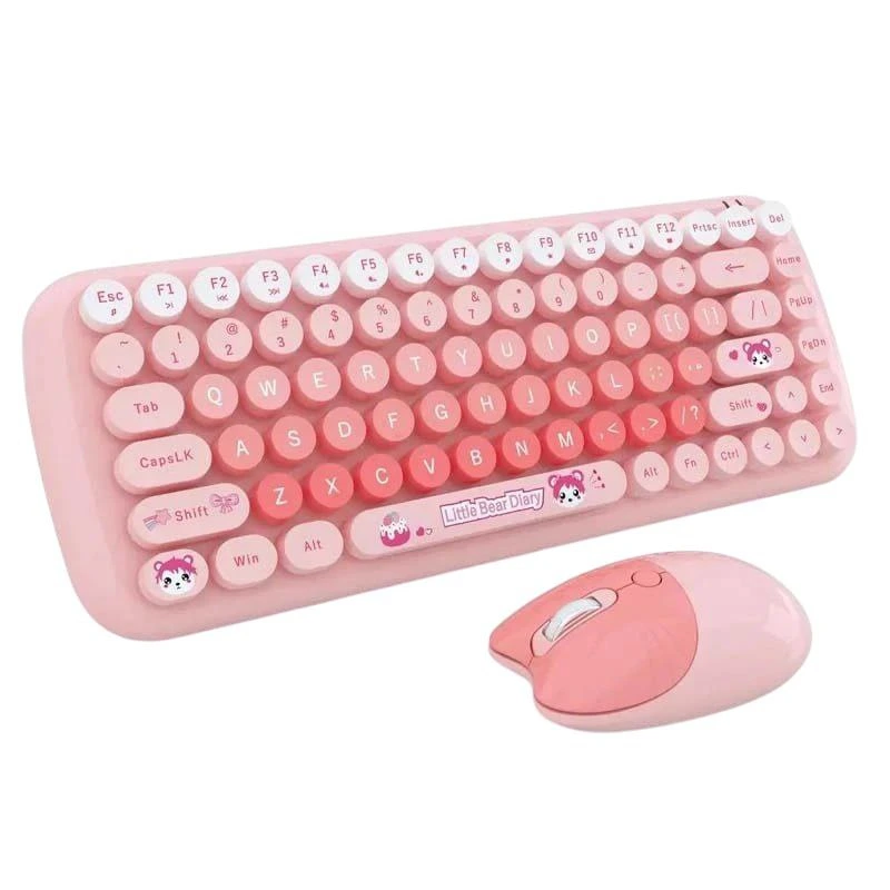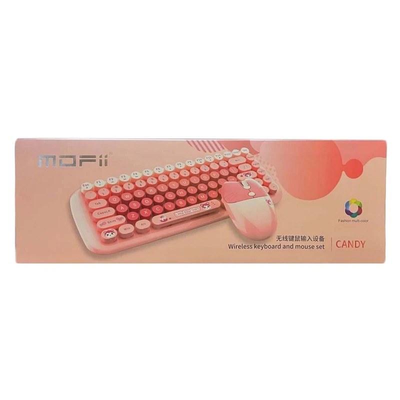 ماوس و کیبورد بی سیم مافی مدل Candy رنگ صورتی