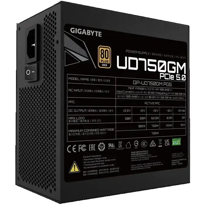 منبع تغذیه کامپیوتر گیگابایت مدل GP UD750GM 80 Plus Gold توان 750 وات ، یک پاور استاندارد مطابق Intel Form Factor ATX 12V v2.31 است که با استفاده از Active PFC با ضریب بیش از 0.9 عملکرد پایدار و مدیریت بهتر توان ورودی را ارائه می‌دهد. این مدل در بازه ولتاژ 100 تا 240 ولت، جریان ورودی 12 تا 6 آمپر و فرکانس 50 تا 60 هرتز کار می‌کند و برای سیستم‌های قدرتمند و حرفه‌ای انتخابی مطمئن است.